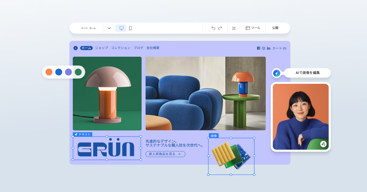 国内で400万アカウントの利用実績を誇るホームページ作成ツール。最新の AI テクノロジーとノーコード設計で、プロ顔負けのウェブサイトを最短数分で作成可能。 専門知識がなくても、あなたのビジョンを即座にカタチにできます。